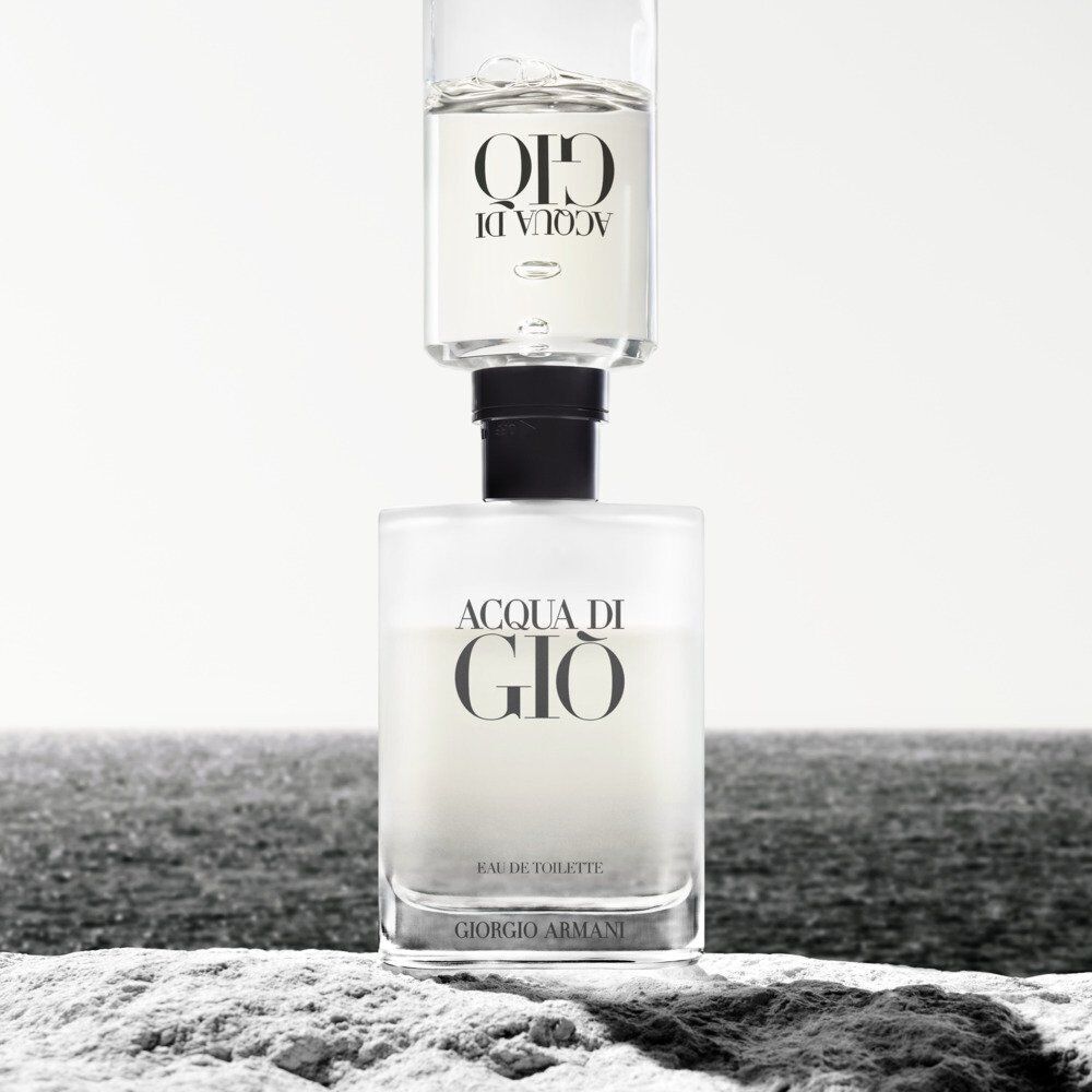ACQUA DI GIÒ EAU DE TOILETTE’s refillable nature underlines the Giorgio Armani commitment to the planet’s future, and chimes with the sense of responsibility toward the environment of those who wear it.